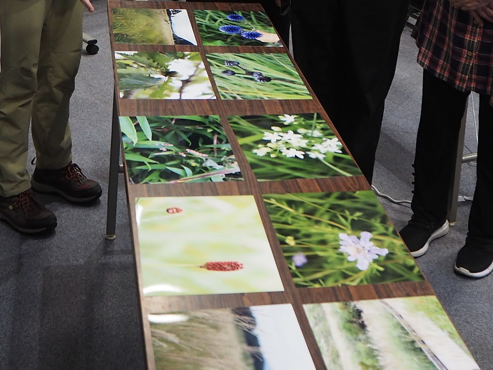 最初にカメラの使い方講座を実施し、参加者はまずカメラの使い方について学びました。その後、タデ原や今見ることのできる植物についての話を聞き、実際に外に出て自由に撮影を楽しみました。最後は、撮った写真の中からそれぞれ一枚を選び、印刷して鑑賞会を行いました。参加者が選んだ写真は、タデ原の風景・どんぐり・ススキ・ワレモコウ・アケボノソウ・スナップ写真等様々で、いつもとは違った視点でじっくり草原を楽しむことができたのではないでしょうか。